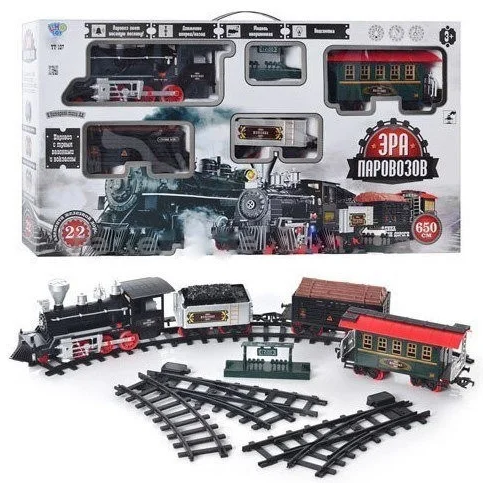 Залізниця "Ера паровозів" 701831 R/ YY 127, довжина шляху 650 см виконана з якісного пластика. Limo Toy представляє ексклюзивну колекцію дитячих залізниць - "Епоха залізних паровозів".