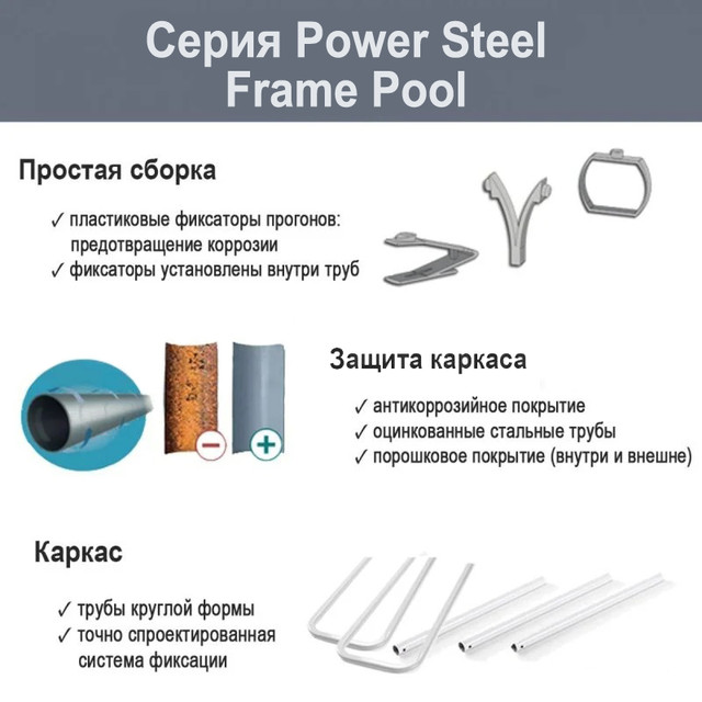 Прямокутний каркасний басейн 549х274х122 см Bestway 56466 Power Steel Для всієї родини Глибокий великий ПВХ