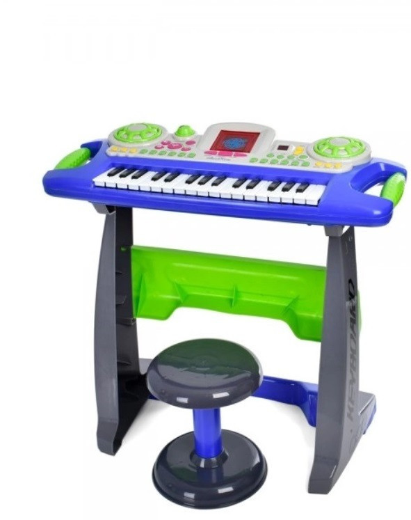 Піаніно допоможе дитині з легкістю зіграти улюблену мелодію. Виготовлений із пластику синтезатор має багато кнопочок і клавіш, стільчик. Синтезатор працює від батарейок