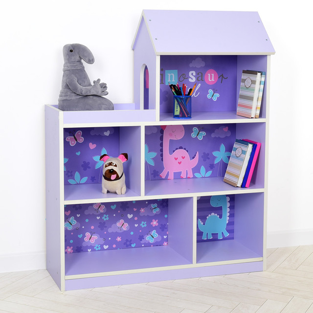 Будиночок-полиця зможе стати чудовим помічником для дитини, він має кілька поличок на які можна ставити книжки, зошити та інші потрібні під рукою речі. Ця модель має компактні розміри, завдяки чому стелаж поміститься навіть у невеликій дитячій кімнаті. Дитячий стелаж має форму будиночка, що напевно сподобається вашому малюкові.