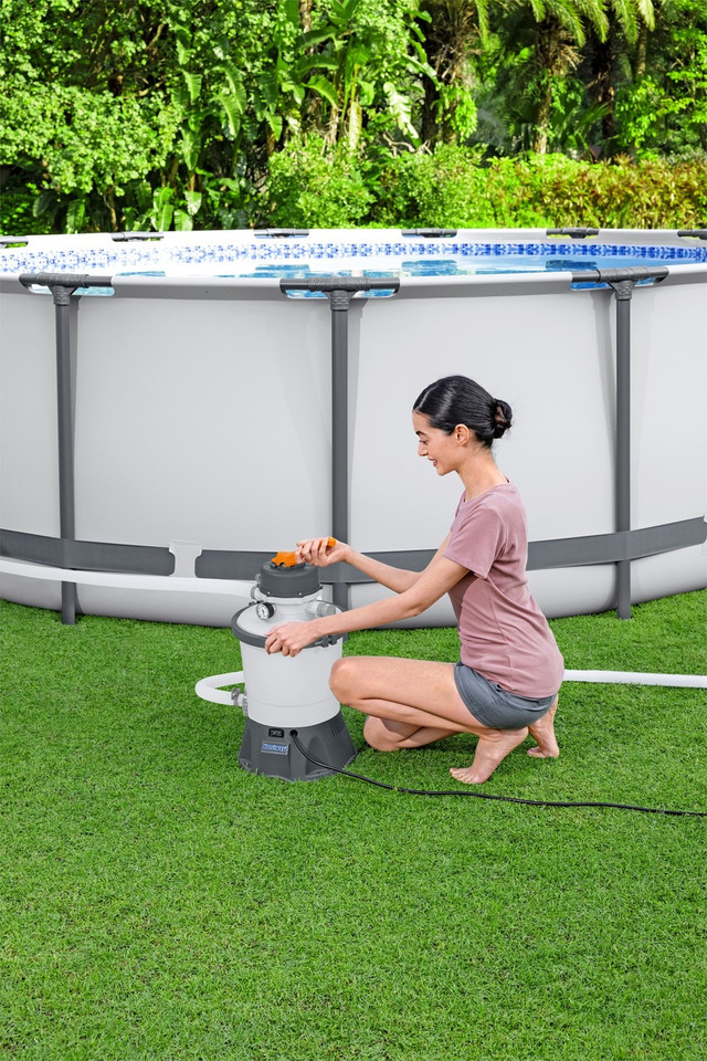 Пісочний фільтр насос для басейну Bestway призначений для механічного очищення води в басейні. Як фільтрувальний елемент використовується спеціально просіяний кварцовий пісок (0,45-0,85 мм). Фільтрувальна установка комплектується насосом, шестипозиційним клапаном перемикання режимів роботи, манометром для індикації тиску в системі.