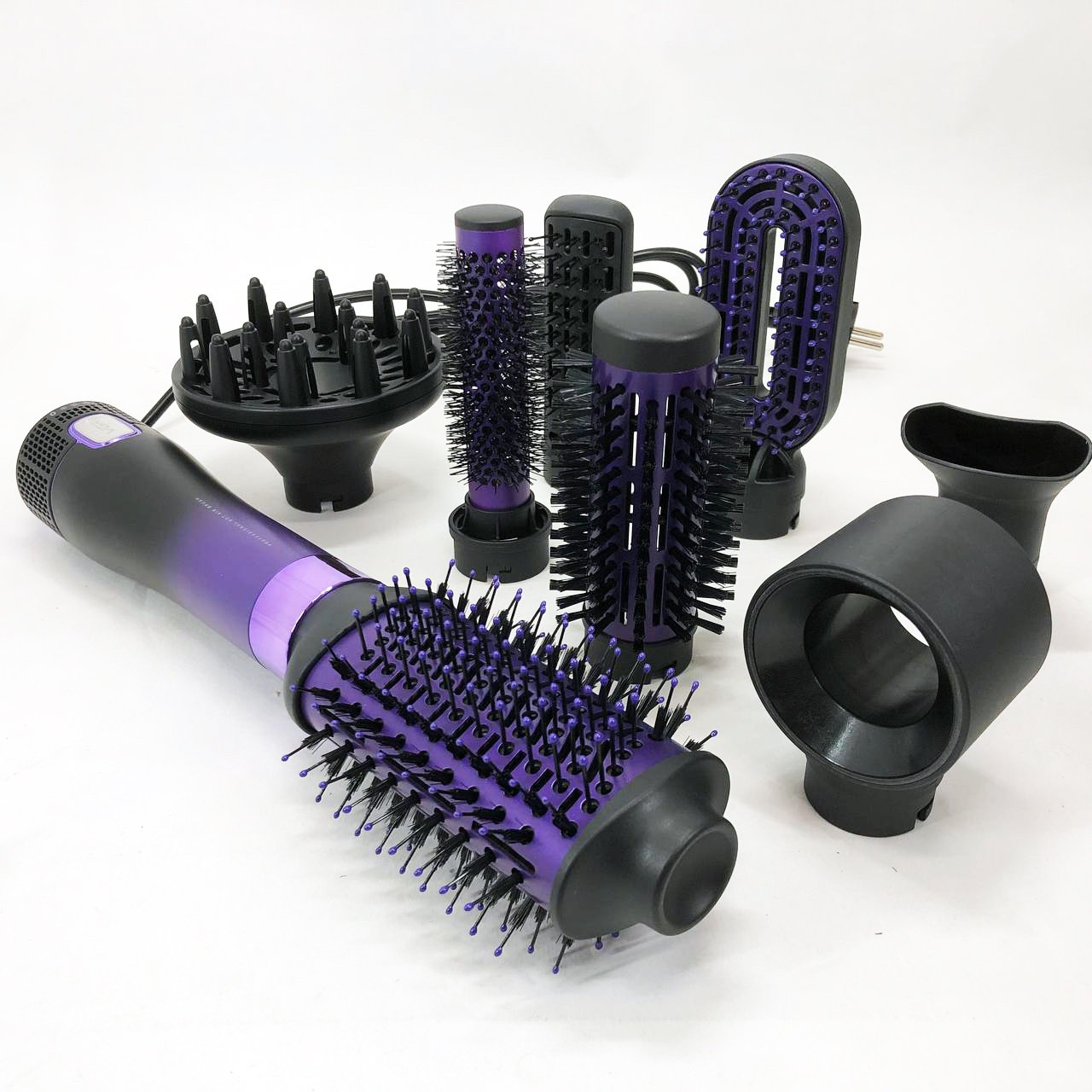 Фен стайлер щетка 8в1 VGR V-488 с 8 насадками 4 режима для завивки локоны укладки прикорневого объема, Фиолетовый